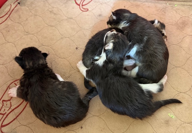 Fullofcharm Autumn Angel had 2 babies overnight on the 12 November. They were all clean dry and suckling when I checked on her early morning. By lunchtime she had not had anymore but I felt she definately had more in her still very fat belly.