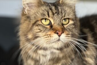 July is a brown tabby girl who has the biggest feet I have ever seen. 7 toes on her front paws. She is super affectionate and thinks everyone is just there to take notice of her. She is one of my favourites (dont tell the others).