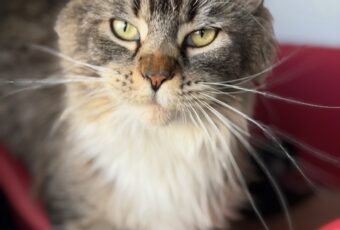 Anoushka is a brown mackerel tabby with a big attitude. Always having a lot to say to anyone who will listen. Shes long and lean just like her dad Agat.